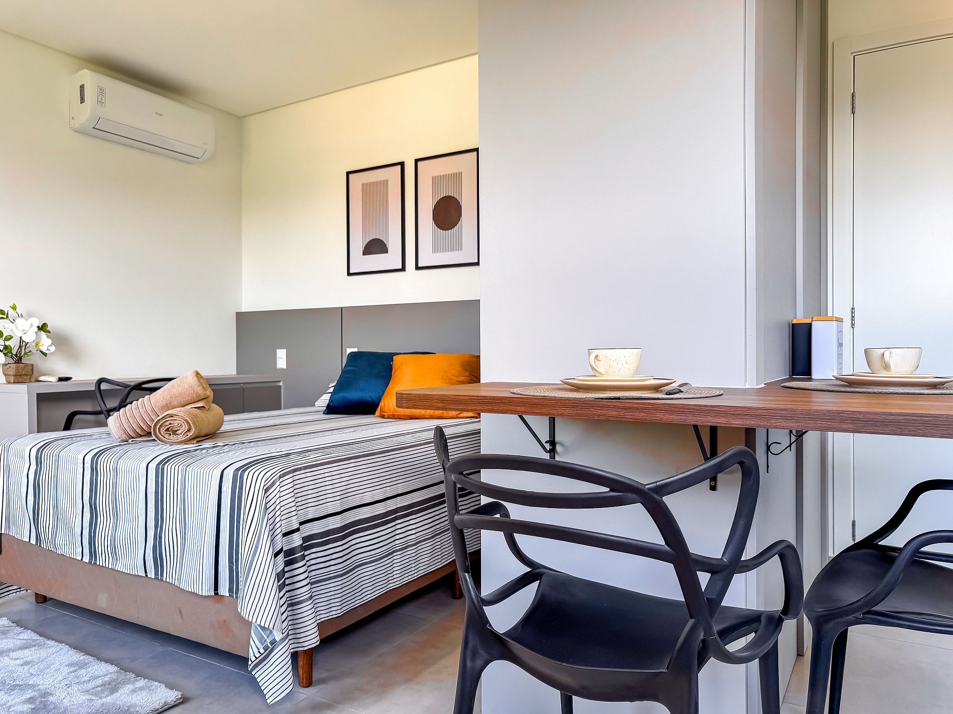 O studio é ideal tanto para estadias curtas quanto para quem precisa permanecer mais dias na cidade com conforto e praticidade.