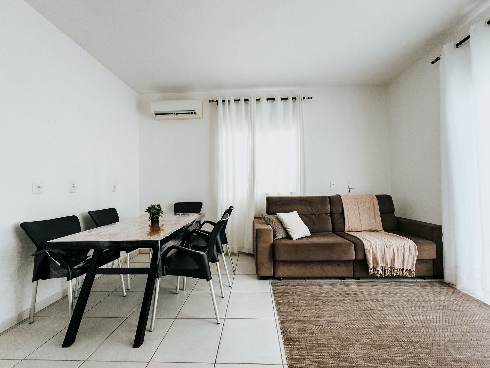 Comodidades: Sala de estar com TV Smart de 32 polegadas (conta os os apps de streamings q o hospede poderá conectar sua conta pessoal) e ar condicionado