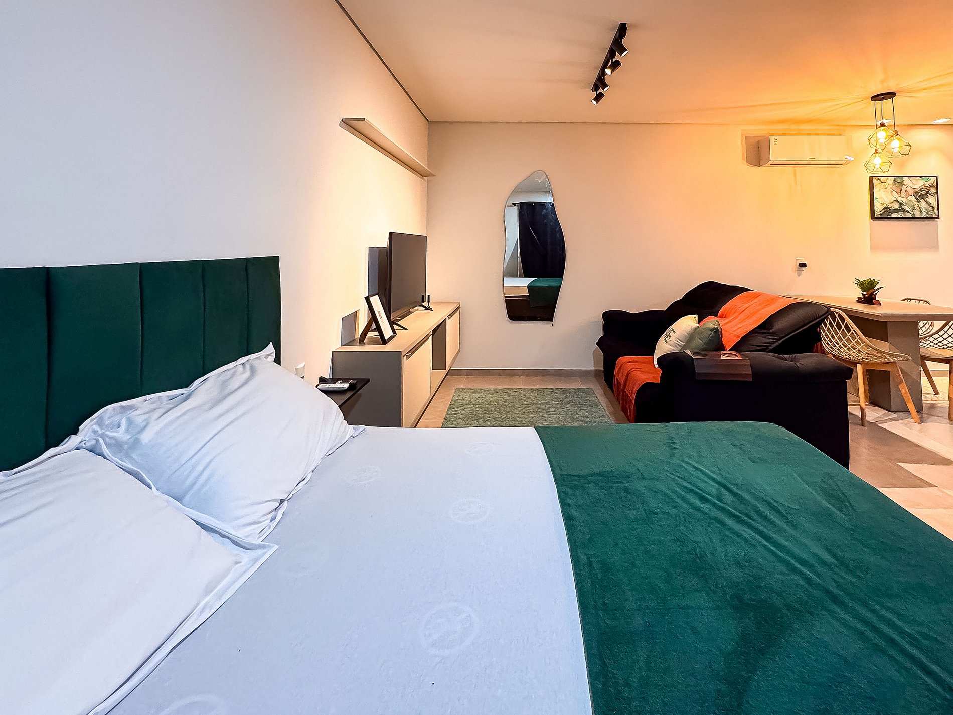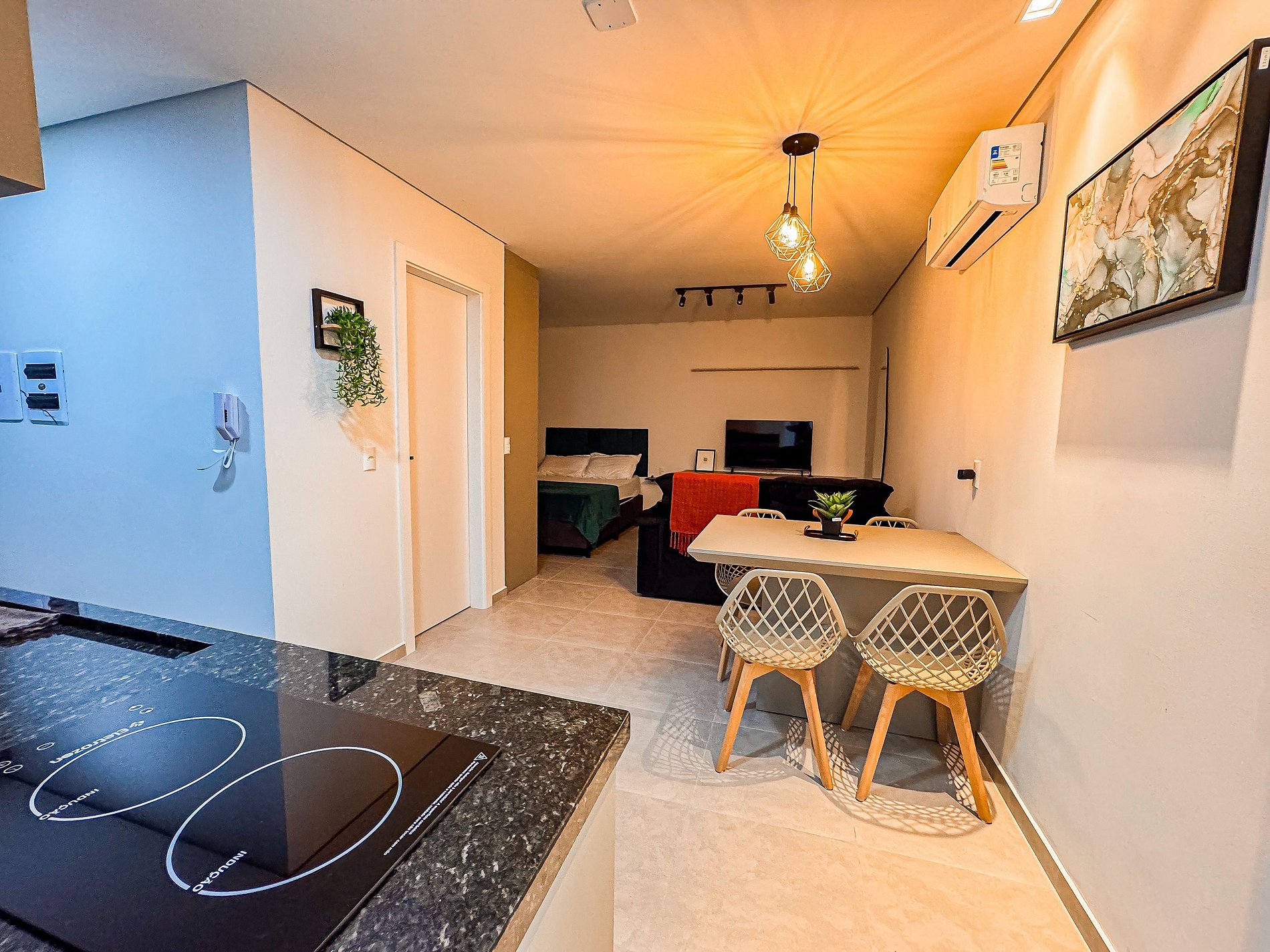 Seja bem-vindo(a) ao nosso studio, um espaço compacto, mas cheio de charme e praticidade. Ideal para casais ou até mesmo uma pequena família, o ambiente foi pensado para proporcionar uma estadia confortável e descomplicada.
