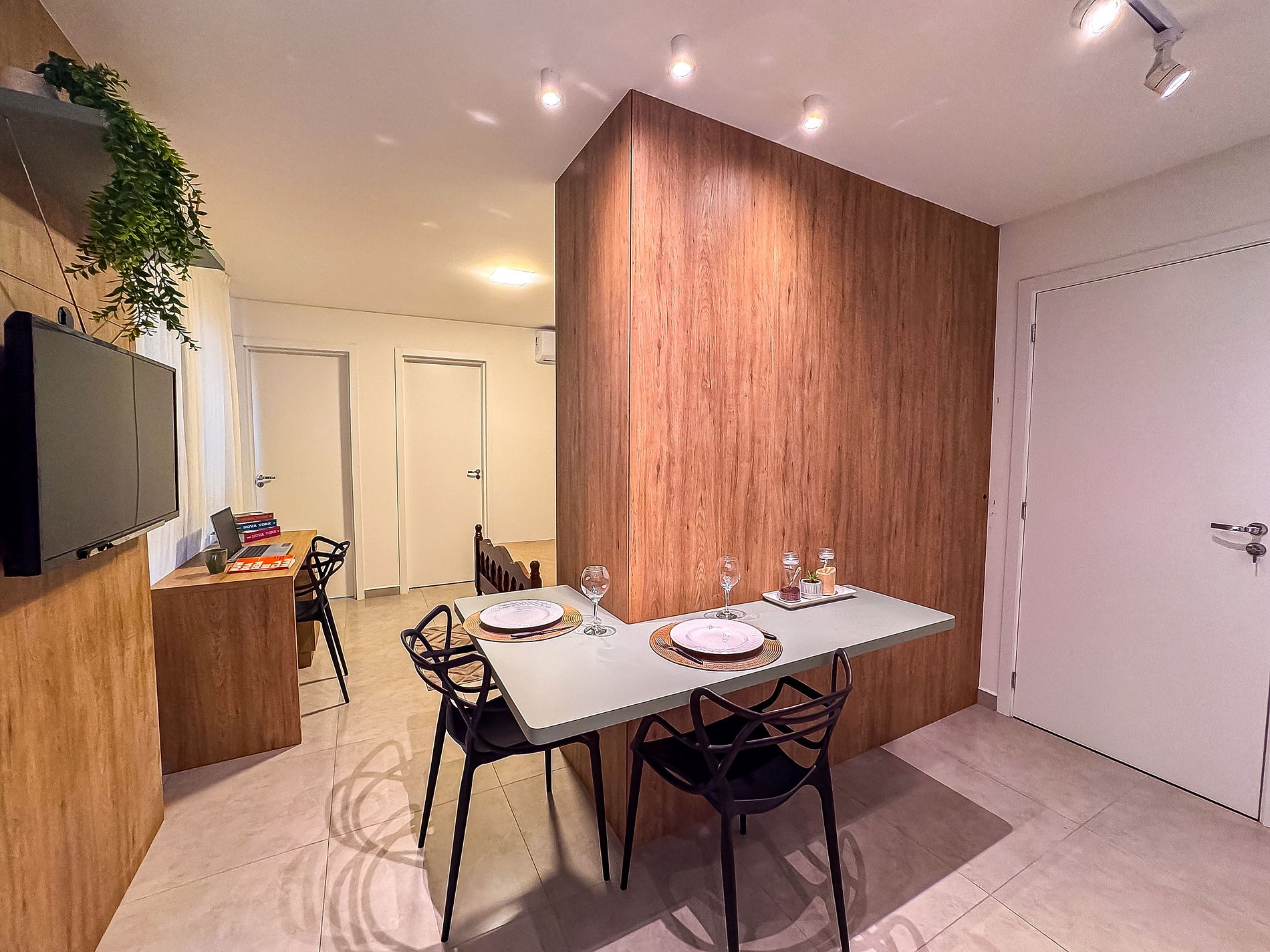 TV não é SMART, mas possui um aparelho BTV com canais e filmes. Temos tbm espaço para trabalho com mesa e cadeira confortável