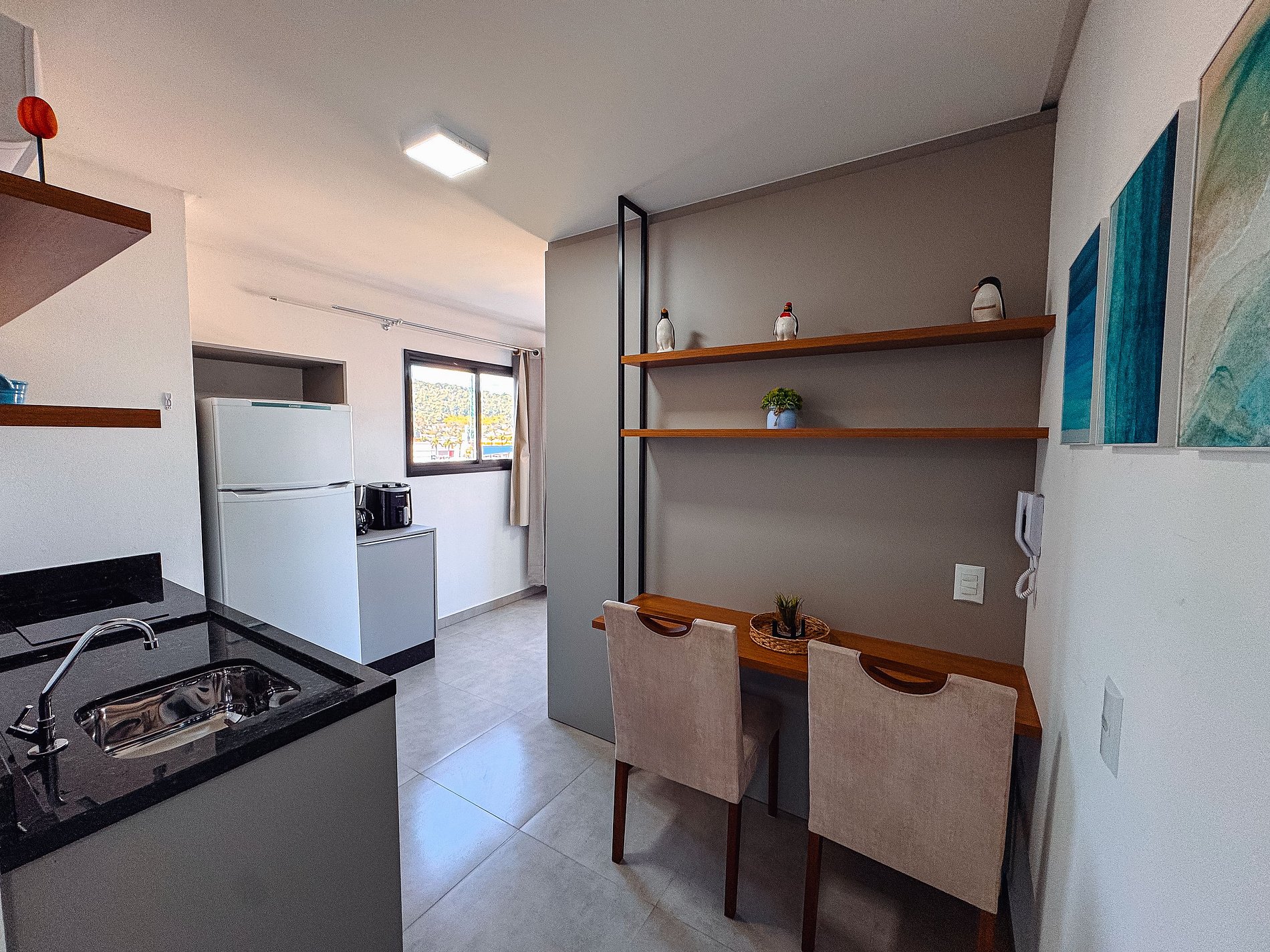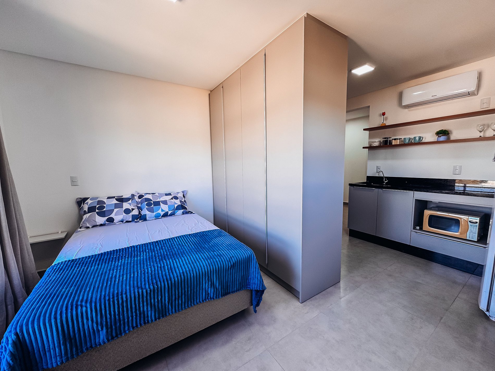 Este studio completo foi planejado para oferecer conforto e praticidade durante sua estadia. Ideal para 2 pessoas, é perfeito tanto para viagens a trabalho, estudo ou lazer.